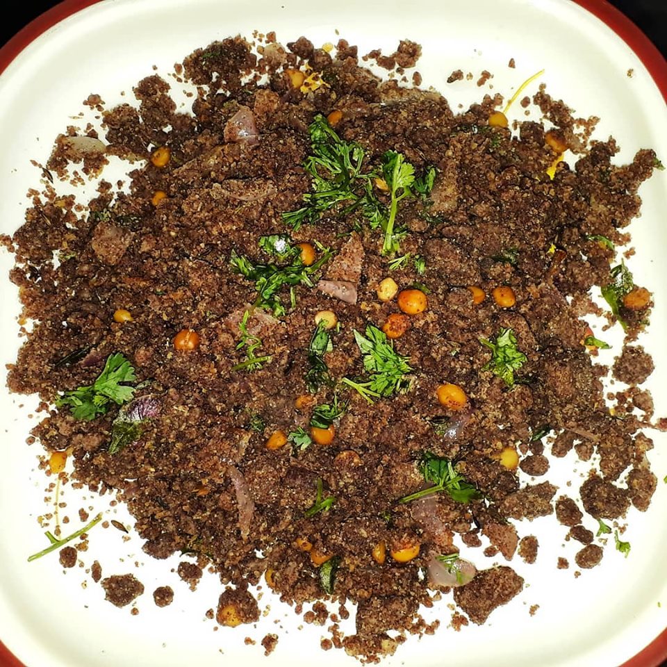 •Fry it for some time and then put the ragi flour mixture into the pan and mix it well.