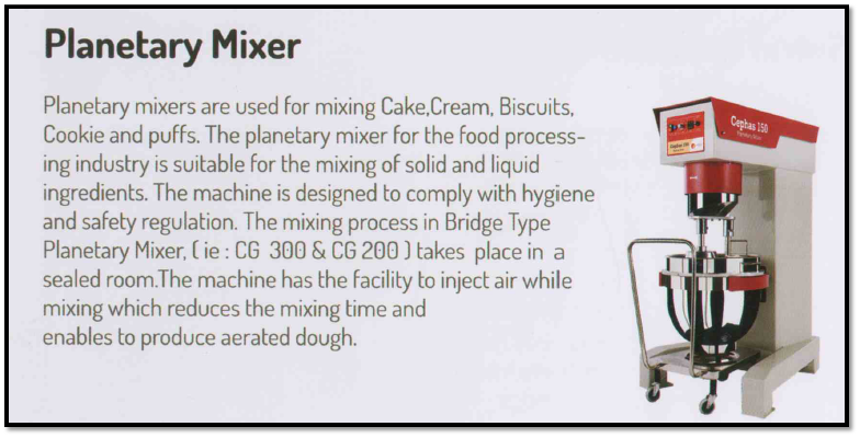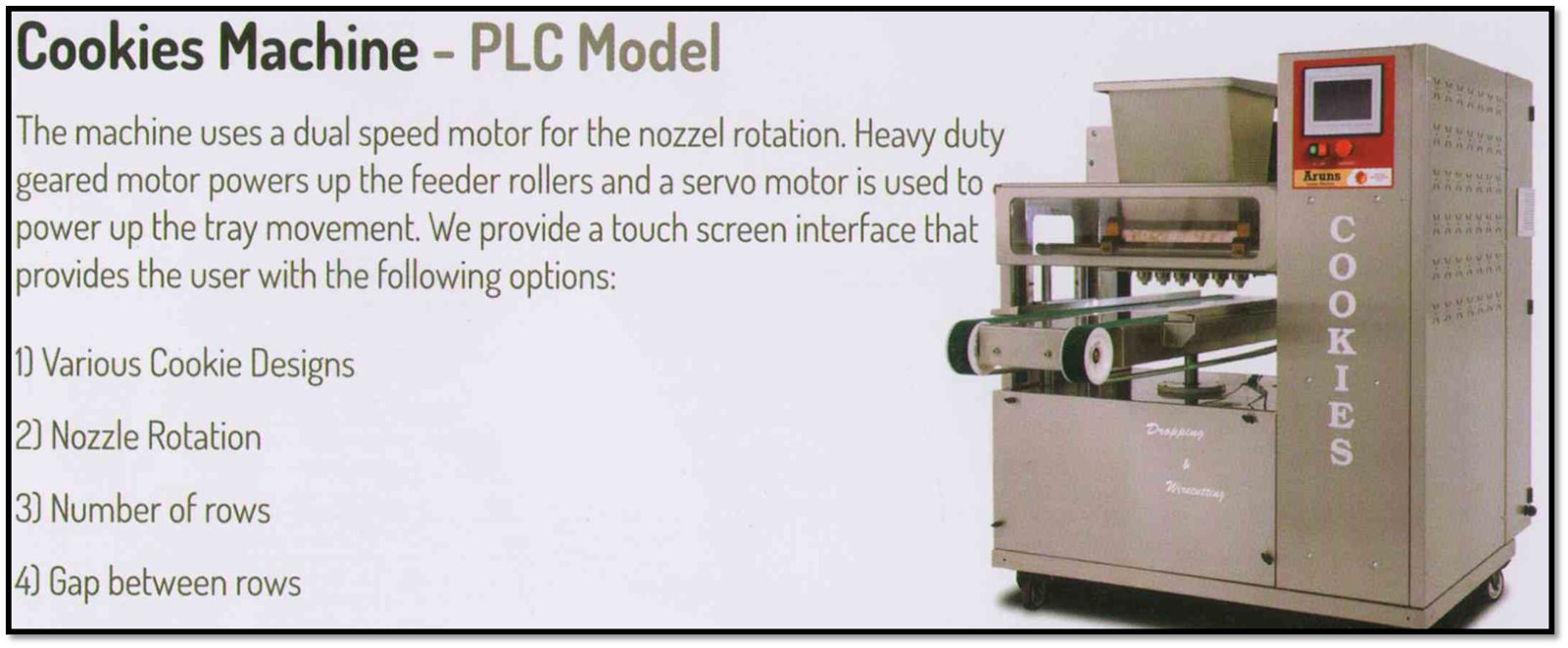 The Millet cookies making machine consist of the planetary mixture, cutting machine, and convection oven. In preparation for cookies, to reduce drudgery, enhance biscuit quality, and hygiene good manufacturing practices must be followed.