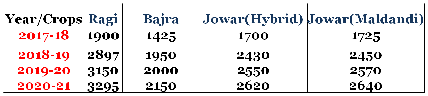 | Four Year MSP of Millets |